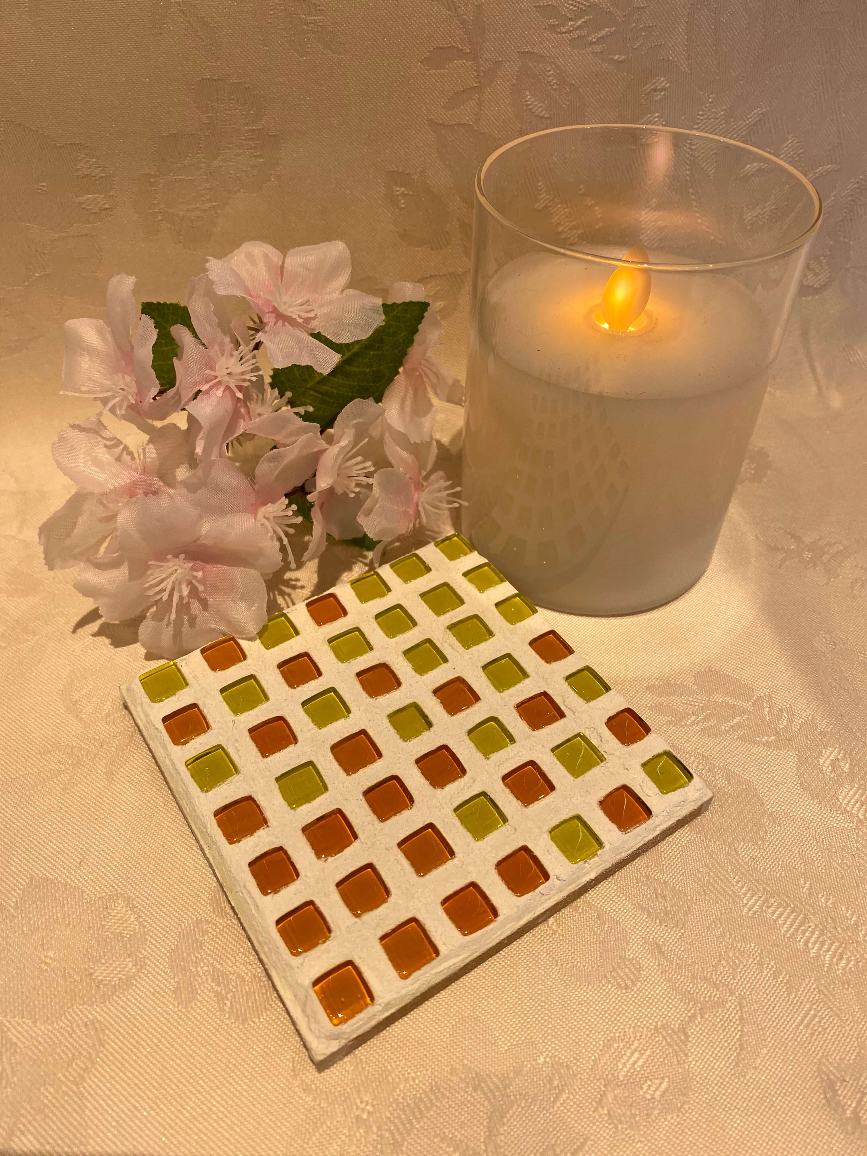 【ガラスタイルコースター】を会員様と一緒に吹田市でオリジナルコースターを作りました。